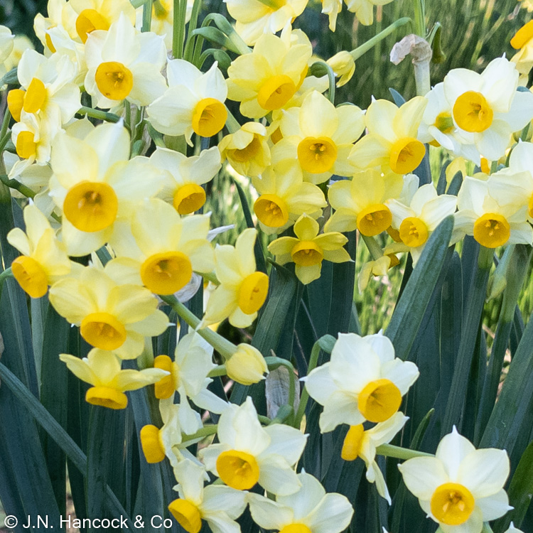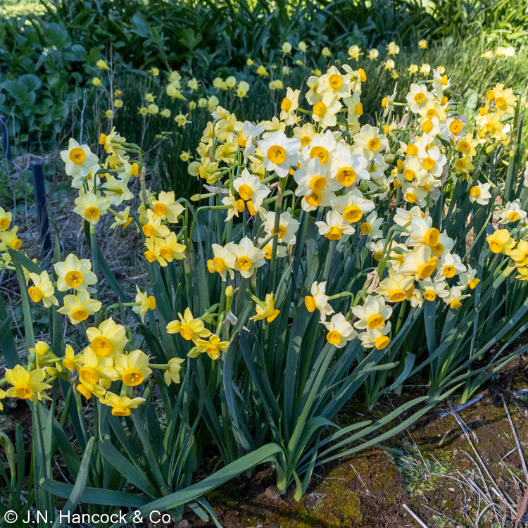 8Y-Y A grex of short tazetta daffodils of varying shades of creams to gold. Sure to become a garden favourite. Vigorous and fragrant. 15cm. Mid.