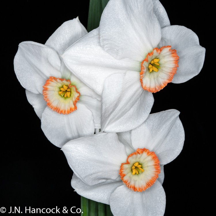3W-WWO Exquisitely dainty. The tiny flat white cup has a delicate rim of an unusual salmon-orange; pure-white petals. Late.