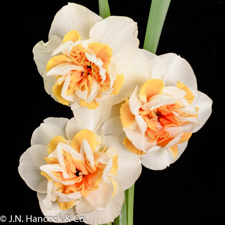 4W-O A spectacular, aptly named double daffodil. A central profusion of peachy-pink and cream tepals compliment the broad cream petals. Mid.