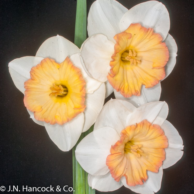 2W-P Stunning decorative bloom with an almost flat crown of soft salmon, paler at the base. Large white petals. Mid-late.