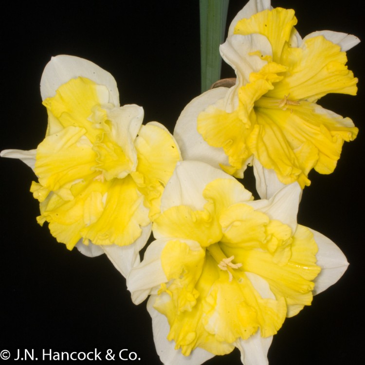 11aW-Y The unusual biscuit-yellow split-corona is ruffled and lies against the white petals. Long-lasting. Mid-late.