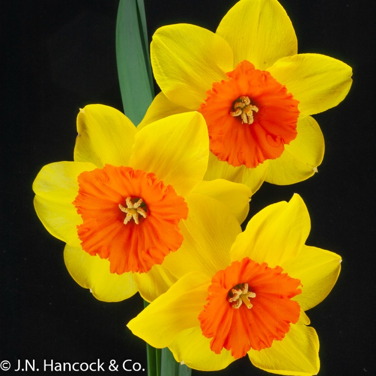 2Y-O Eye-catching large flower with golden-yellow petals surrounding a brilliant orange bowl cup that flattens at maturity. Early-mid.