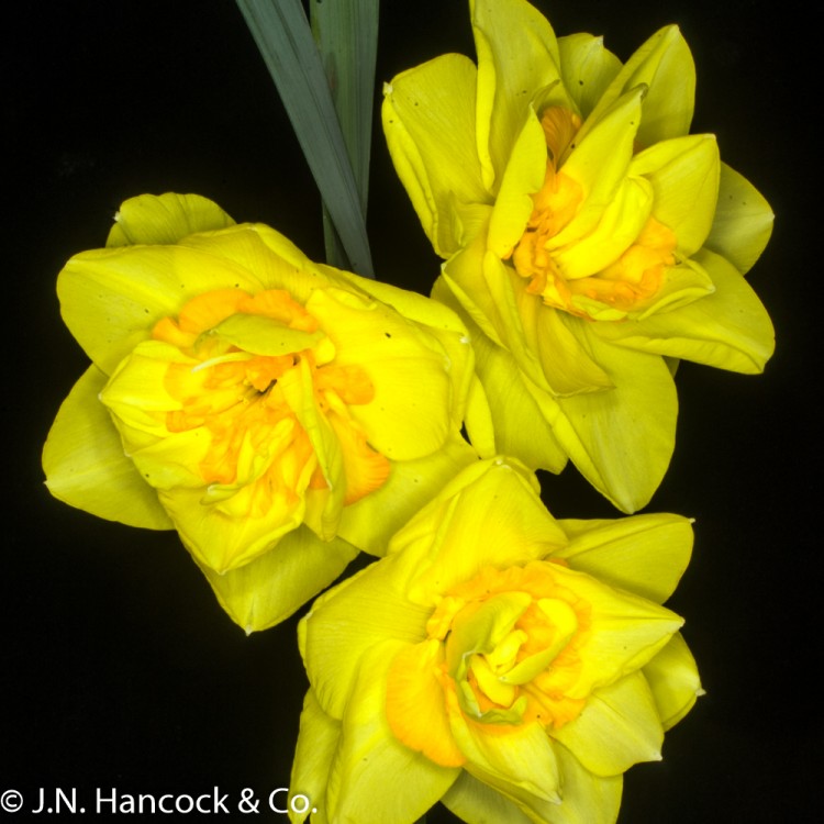 4Y-O Immense flower with bright lemon-yellow broad petals interspersed with brilliant orange petaloids. Tall. Early.