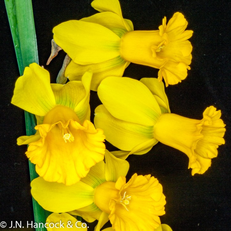6Y-Y Delectable cyclamineus, the characteristic swept-back mid-yellow petals expose a shapely ruffled golden trumpet. Mid.