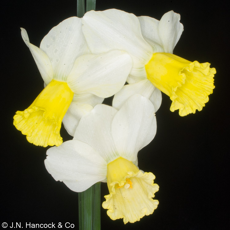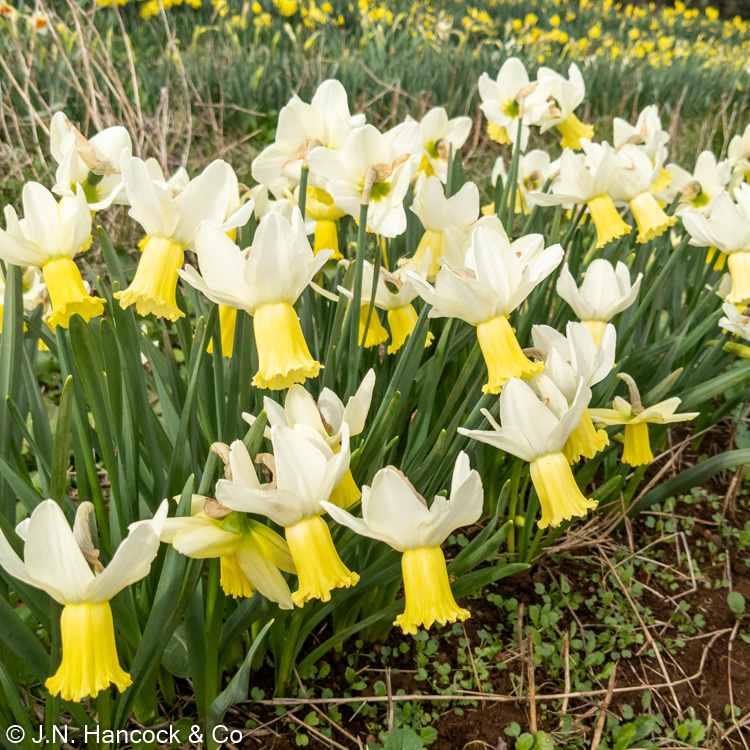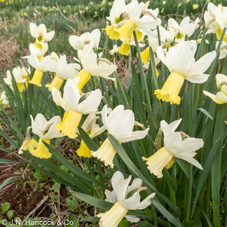 6W-Y A fetching flower with characteristic white swept-back petals and a long, lemon-yellow, daintily frilled trumpet. Approx. 20cm, Mid