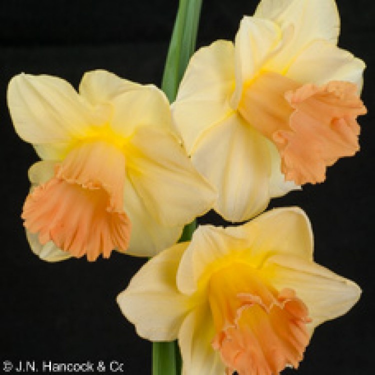 1Y-P Spectacular pastel-pink daffodil. A slightly expanded trumpet of apricot-pink compliments the custard-yellow petals. Early-mid.
