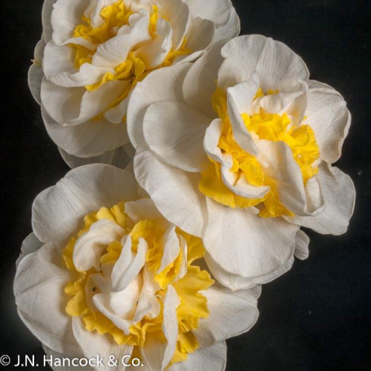 4W-Y An alluring large formal double. Layers of snow-white petals are interspersed with bright yellow inner petaloids. Strong stem. Mid-late.