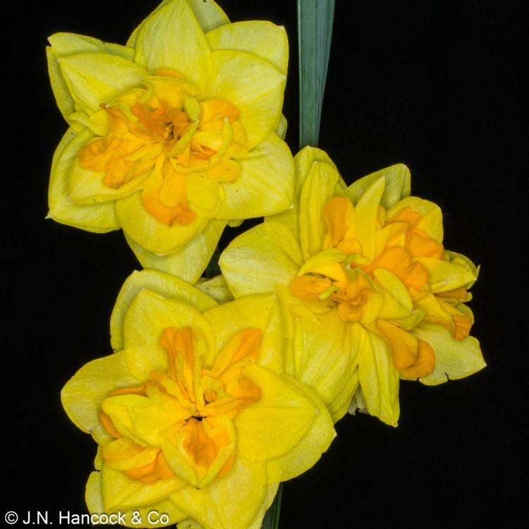 4Y-O An eye-catching daffodil; full double with golden-yellow petals interspersed with masses of deep-orange inner petaloids. Tall. Mid-late.