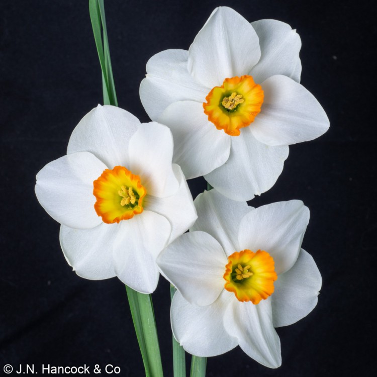 3W-YOO Excellent bloom; white petals and a striking yellow small-cup with an bright orange bleed around the rim. Mid-late.