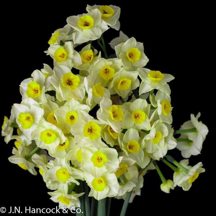 8Y-Y Outstanding larger flowered tazetta. Masses of florets per stem with lemon-yellow petals and slightly darker bowl-shaped cup. Scented. Early-mid.